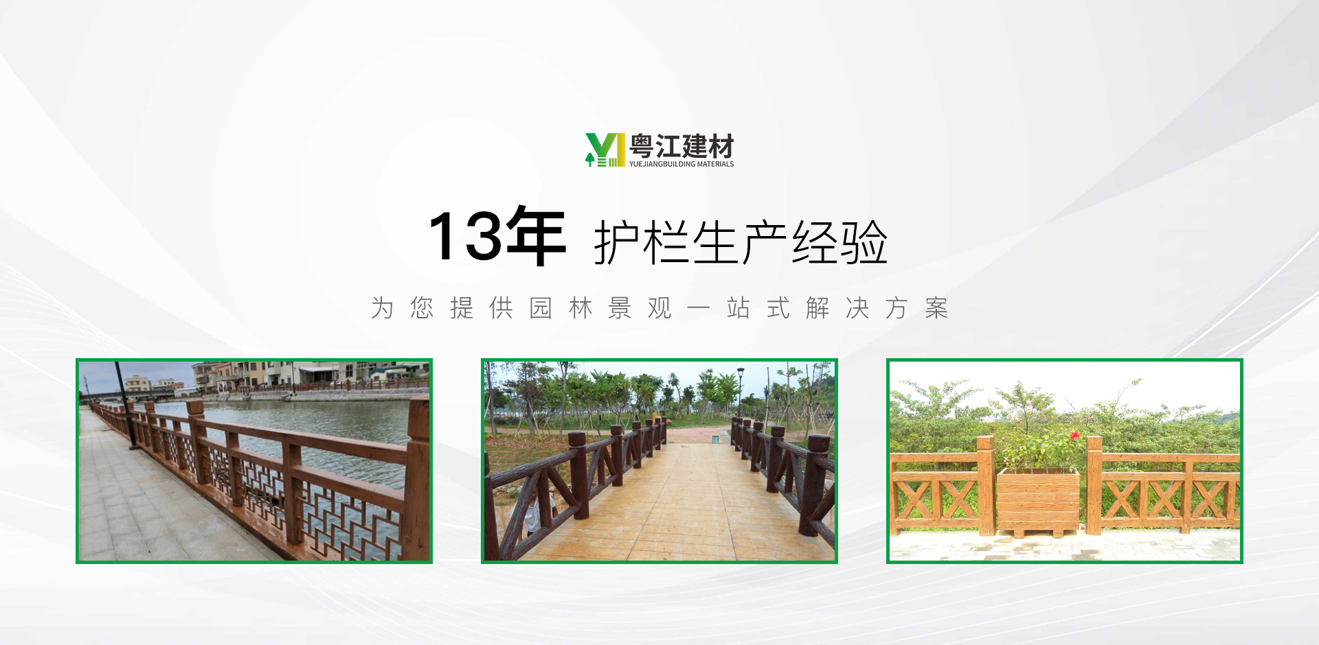 江門市粵江建材有限公司隸屬于中山市鴻文園林景觀工程有限公司(前身為成立于2010年——中山市三圣園林景觀工程有限公司,2021年更名為中山市鴻文園林景觀工程有限公司)旗下子公司,成立于2022年,公司坐落于粵港澳大灣區重要節點城市—鶴山市,占地10余畝,現有員工50余人。是一家專業從事園林護欄設計及施工一體化的園林景觀工程公司,公司擁有仿木、仿石、仿竹、鑄造石四大系列產品,主營產品有:河道護欄、橋梁護欄、仿木護欄、仿漢白玉護欄、仿石護欄、鑄造石護欄、仿竹護欄、仿木護岸樁、仿木花架、仿木花箱、仿木地板、組合護欄、棧橋等景觀產品。產品涉及水利建設、景區建設、城鎮園林建設、小區美化建設、新農村改造等景觀裝飾。